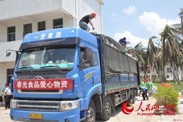 人民網(wǎng)海南視窗文昌7月23日電(記者毛雷 實(shí)習(xí)生喻晨)超強(qiáng)臺(tái)風(fēng)“威馬遜”登陸海南第5日,人民網(wǎng)海南視窗聯(lián)合海南春光食品前往受災(zāi)最為嚴(yán)重的文昌市翁田鎮(zhèn),為災(zāi)區(qū)送去急需的14萬平方米防水布料。