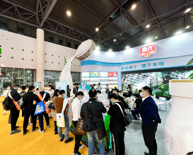 春光直接在展位上豎起了高大的椰子模型,加上傾瀉而出的奶白椰汁,極具海南風(fēng)韻,數(shù)米外都能感覺到椰香撲鼻。