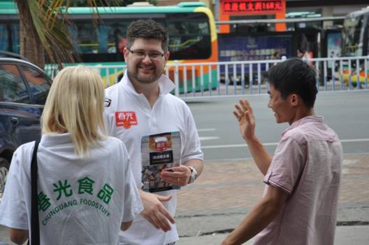 有句話說“外來的和尚會念經(jīng)”,迪肯大學MBA班的14位學員在短短數(shù)小時內(nèi)就通過推薦招徠了幾千元的生意,令那些猜測“洋導購”只是“走走過場”的人大跌眼鏡,直言不能小看了這群高智商的國際精英們。由于語言不通,很多中國顧客一開始并沒有接受學員們的推薦和邀請,在翻譯的同步解釋下,客人才明白學員們的意圖,隨后游客抱著好奇的心情跟著學員來到春光食品的專營店里試吃產(chǎn)品感受服務(wù),部分顧客還順勢發(fā)展成為團購。